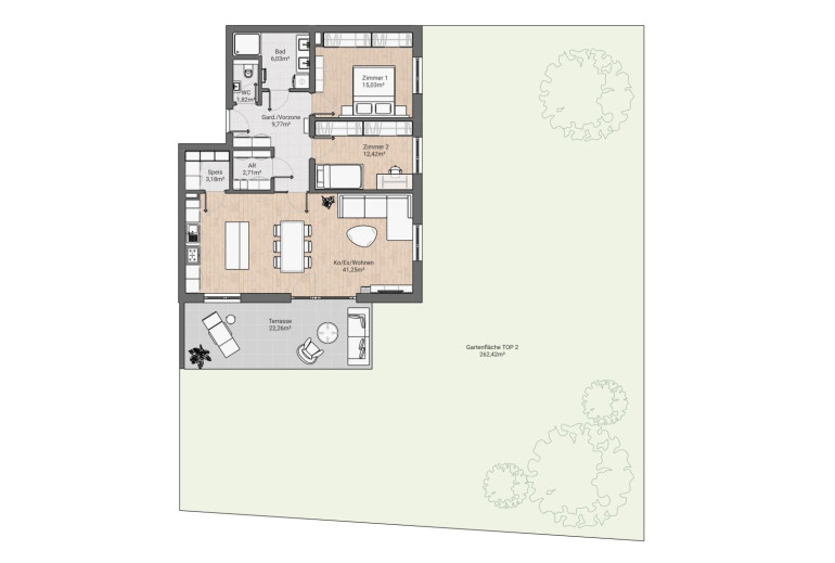 Gartenfläche: 262,42 m² private Gartenfläche