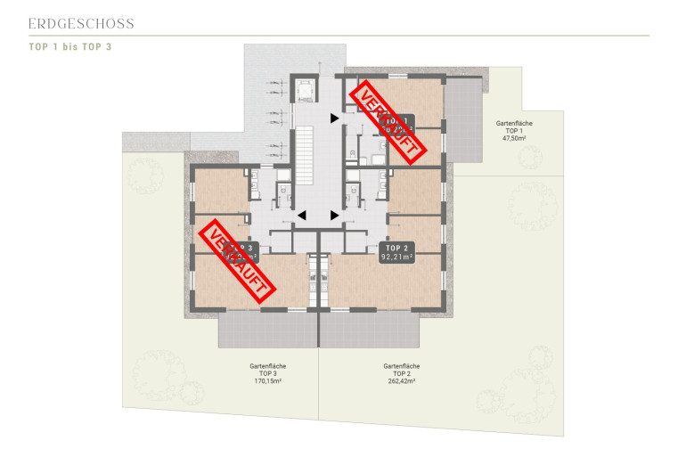 Drei großzügige Gartenwohnungen laden mit eigenen Terrassen und grünen Außenflächen zum Entspannen im Freien ein – ideal für Familien mit Kindern oder Gartenliebhaber.
