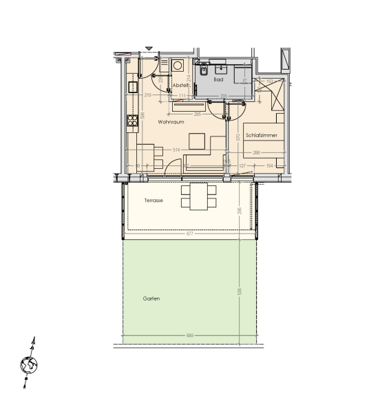 Diese hochwertig ausgestattete 2-Zimmer-Wohnung besticht durch ihre perfekt genutzte Wohnnutzfläche von 44,84 m² sowie einer sonnigen Terrassenfläche von 21,33 m² mit 37,01 m² Garten, die sich ideal für entspannte Stunden im Freien eignen. Die Wohnung befindet sich in Südlage und bietet eine ideale Raumaufteilung.