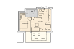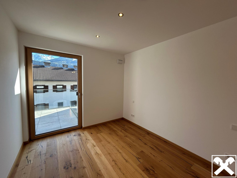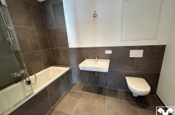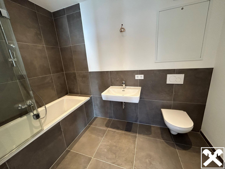 Die Wohnung verfügt über einen geräumigen und lichdurchfluteten Wohnbereich, der sich ideal für gemütliche Abende eignet. Das Schlazimmer bietet einen ruhigen Rückzugsort mit ausreichend Platz für ein großes Bett und Stauraum. Das moderne Badezimmer ist mit einer Badewanne inkl. Glaswand, einem großem Waschbecken und einem Handtuchwärmer ausgestattet und rundet das durchdate Raumkonzept ab.