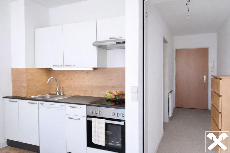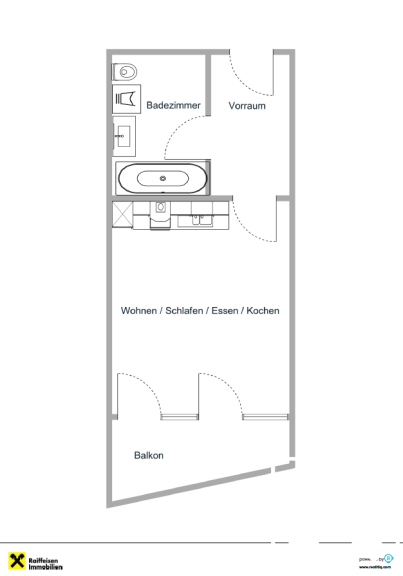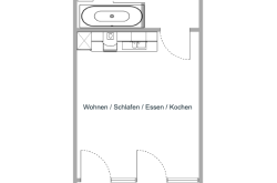 Die Garconniere befindet sich in einer ruhigen und sonnigen Lage im ersten Obergeschoß eines gepflegten Mehrparteienhauses. Die Wohnung überzeugt durch ihre praktische Raumaufteilung: Ein einladender Vorraum bietet Platz für eine Garderobe und verbindet das Badezimmer, das mit einer Badewanne und einem Waschmaschinenanschluss ausgestattet ist, mit dem Wohnbereich. Der lichtdurchflutete Wohn- und Schlafbereich ist geschickt geschnitten und bietet ausreichend Raum für ein Bett, eine Schrankwand und einen Essbereich. Die moderne Einbauküche fügt sich harmonisch in den Wohnraum ein und schafft ideale Voraussetzungen für Kochliebhaber. Hervorzuheben ist der großzügige, nach Süden ausgerichtete Balkon, der sich über eine breite Glasfront erstreckt und den Wohnraum mit viel Tageslicht erfüllt.