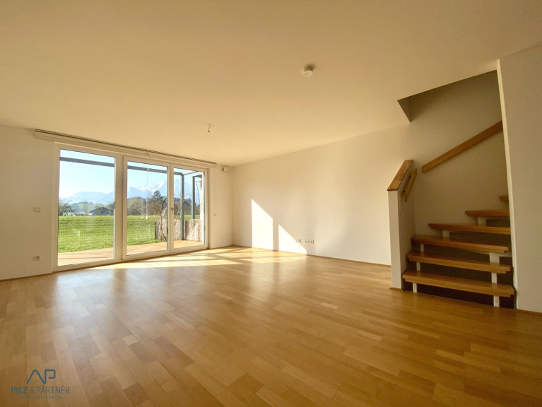 Modernes Eckreihenhaus mit großer Sonnenterrasse und kleinem Garten. Hier wohnt man familienfreundlich im idyllischen Ortsteil Waidach mit phantastischem Natur- und Bergblick. Es stehen rund 95 qm Wohnfläche auf zwei Ebenen zur Verfügung. Der Vollkeller bietet großzügige Flächen für Hab und Gut. Ein Carport und zwei PKW-Stellplätze vor dem Haus runden dieses Angebot ab.