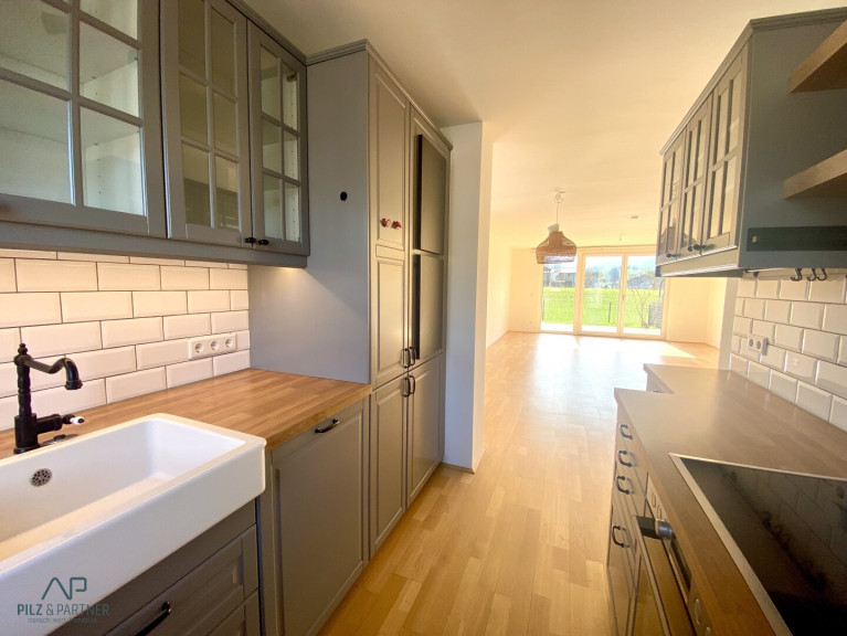 Parkett, Fliesen, Solarenergie, Fußbodenheizung, Einbauküche, Bad mit Fenster, Badewanne, Dusche, Carport, Parkplatz