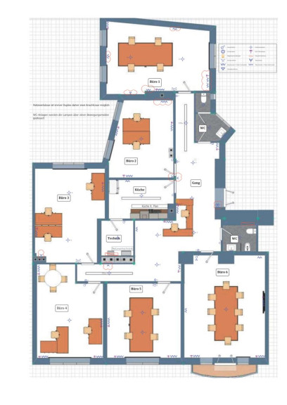 Der Plan zeigt die künftige Raumaufteilung nach dem Umbau - der Umbaubeginn hat bereits gestartet und das Büro ist ab 01.05. anmietbar!