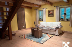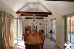 Die ca. 210 m² große Wohnfläche verteilt sich auf zwei Wohneinheiten, die durch einen geschmackvoll gestalteten Laubengang miteinander verbunden sind.