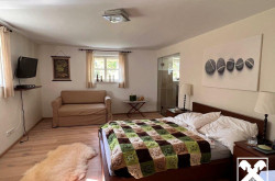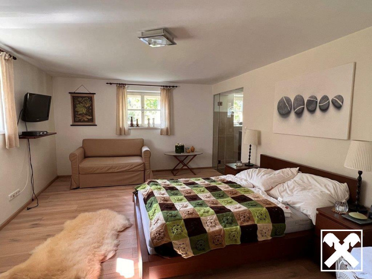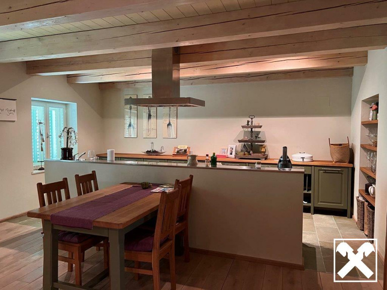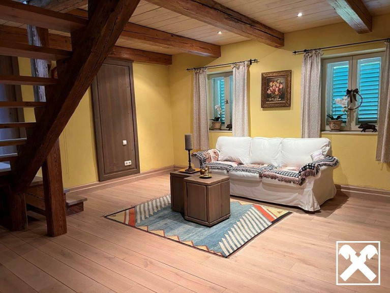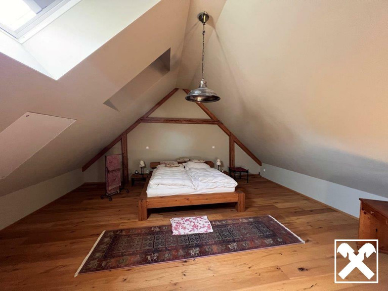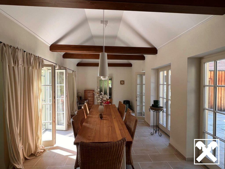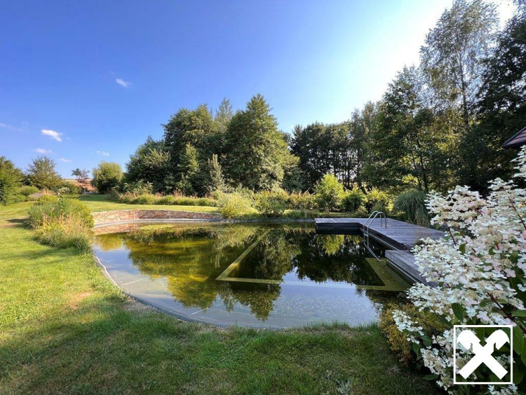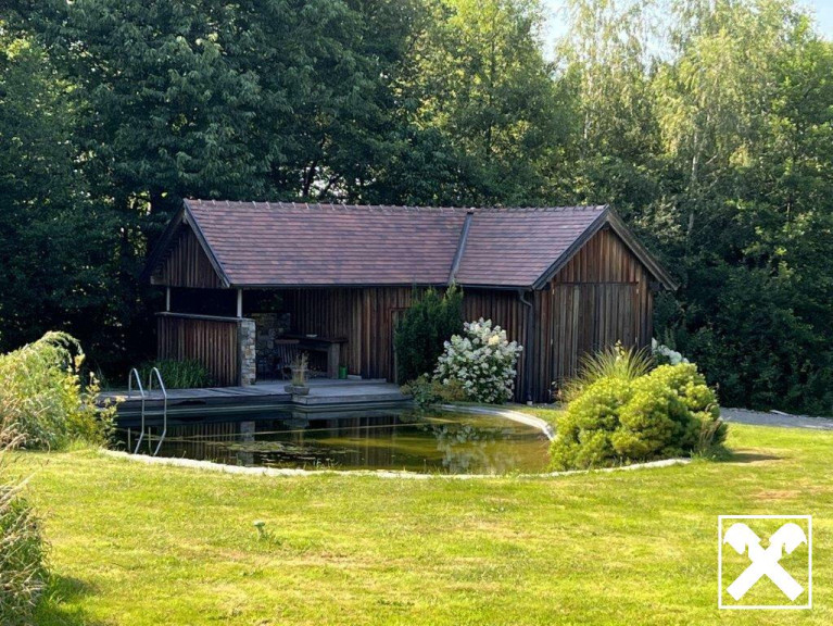 Der weitläufige, liebevoll gestaltete Garten mit alten Obstbäumen und blühenden Sträuchern schafft eine natürliche, stilvolle Atmosphäre und ist ideal für Naturliebhaber sowie Hobbygärtner. Ein harmonisch integriertes Schwimmbiotop mit moderner Filteranlage sorgt für naturnahe Erholung auf höchstem Niveau.