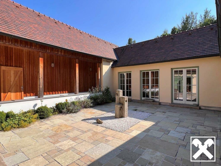 Das Herzstück des Anwesens bildet der uneinsehbare Innenhof der Ruhe, Geborgenheit und absolute Privatsphäre garantiert.
