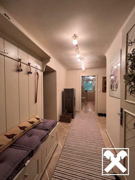 Für hohen Wohnkomfort sorgt ein durchdachtes Heizsystem mit Flüssiggasanlage und Fußbodenheizung. Zusätzlich steht im Erdgeschoss ein Ofen für Scheitholz zur Verfügung, während im Obergeschoss Infrarotpaneele für angenehme Wärme sorgen.
