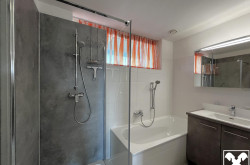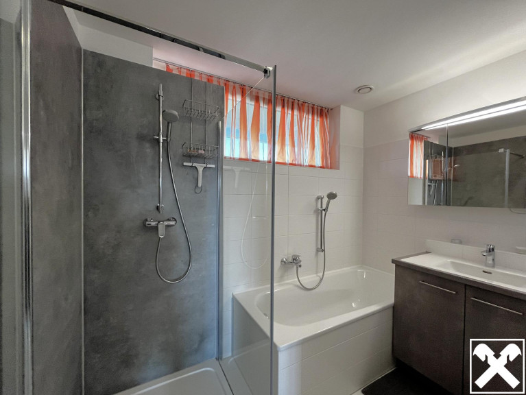 - Badezimmer mit Badewanne und Dusche
