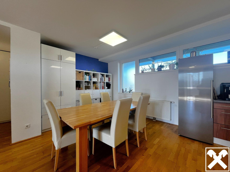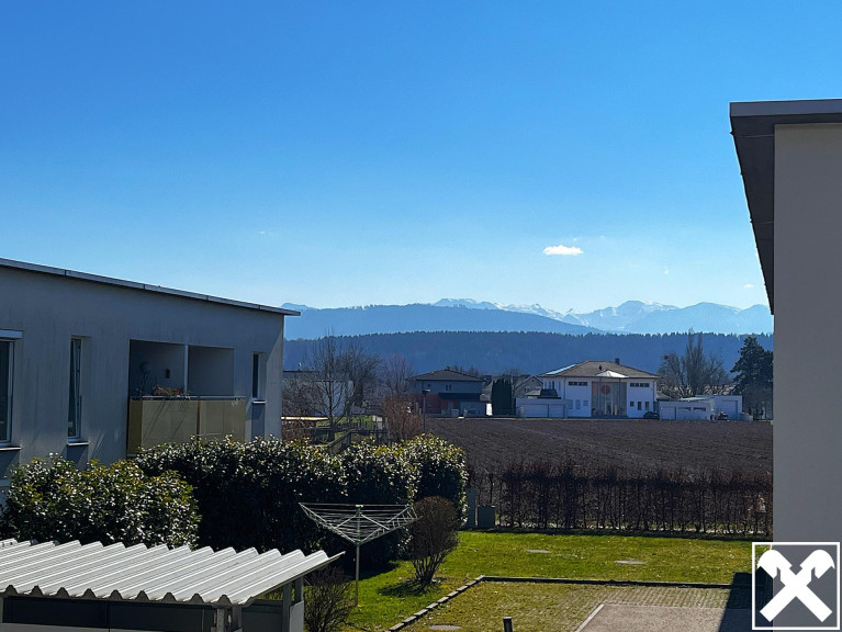 Ein besonderes Highlight ist die gemütliche Loggia mit wunderschönem Blick auf das beeindruckende Höllengebirge – perfekt zum Entspannen nach einem langen Tag.