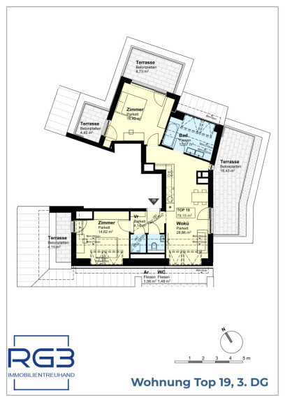 Diese Top Immobilie befindet sich im 3. DG und hat eine Wohnfläche von ca. 79,15 m². Sie hat einen Kellerraum, der mit dem Lift erreichbar ist.
