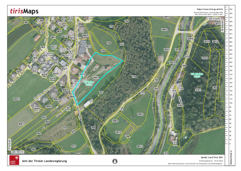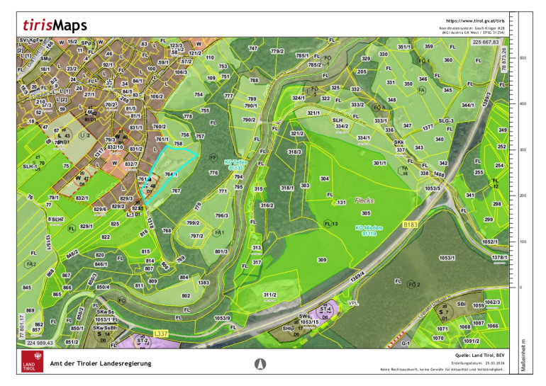 In wunderschöner, ruhiger, sonniger Lage von Telfes im Stubaital gelangt ein attraktives Grundstück zum Verkauf. Das Gesamtgrundstück umfasst derzeit ca. 5.929 m², wovon eine Teilfläche von rund 1.000 m², ( auch zwei mal 500 m²) südwestlich ausgerichtet,  abgetrennt werden.