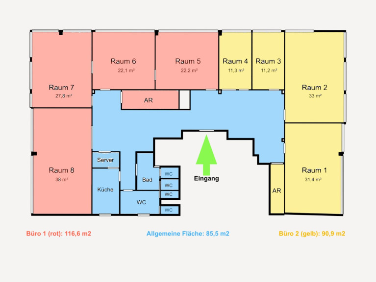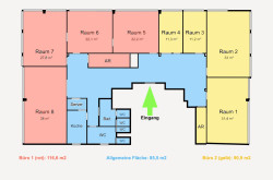 Nach Rücksprache mit dem Eigentümer können die räumlichen Gegebenheiten den individuellen Wünschen angepasst werden. Teilungen, Erweiterungen und Adaptierungen der Bürofläche sowie der Ausstattung sind somit möglich. Auch der flächendeckende Einbau von Klimageräten ist realisierbar. Es besteht außerdem die Möglichkeit, die Bürofläche um weitere Räume/Zimmer zu erweitern oder zu reduzieren.