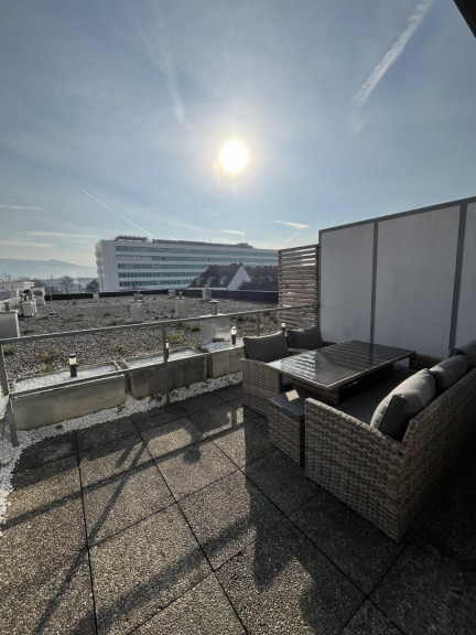 Die hellen Räume schaffen eine angenehme Atmosphäre, in der Sie sich sofort wohlfühlen werden. Ein besonderes Highlight ist die Terrasse – hier können Sie entspannte Stunden im Freien genießen, den Ausblick über die Stadt schweifen lassen oder gemütliche Abende mit Freunden und Familie veranstalten.