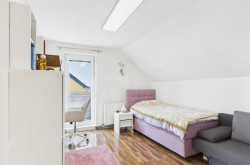 Hier befinden sich drei gut geschnittene Schlafzimmer, die flexibel als Kinderzimmer, Gästezimmer oder Homeoffice genutzt werden können. Die Räume sind hell und freundlich und versprechen ein angenehmes Wohnklima. Auch gibt es einen Balkon, der von einem der Zimmer aus zugänglich ist und einen wunderschönen Blick auf die umliegende Landschaft sowie den idyllischen Garten mit seinem eigenen Bach bietet.