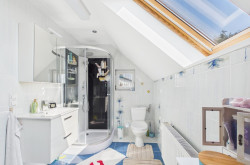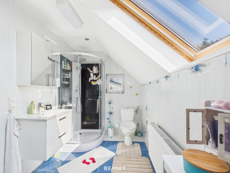Angrenzend an das Elternschlafzimmer befindet sich ein weiteres Badezimmer mit Dusche und WC.