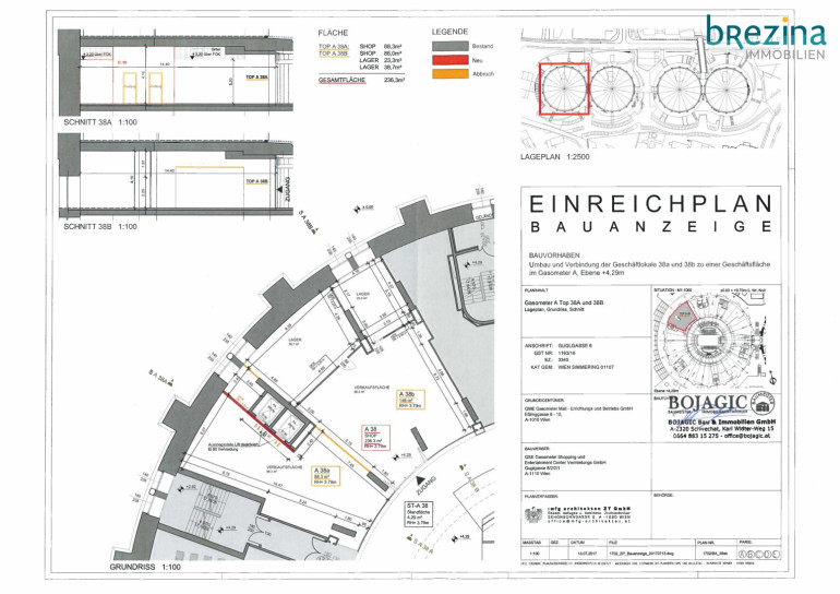 A38A mit ca. 88,30 m² zu einer Brutto Gesamt Miete brutto von € 2.691,17 inkl. Heiz-/Kühl-/Wasser-/Werbekosten