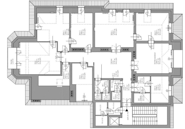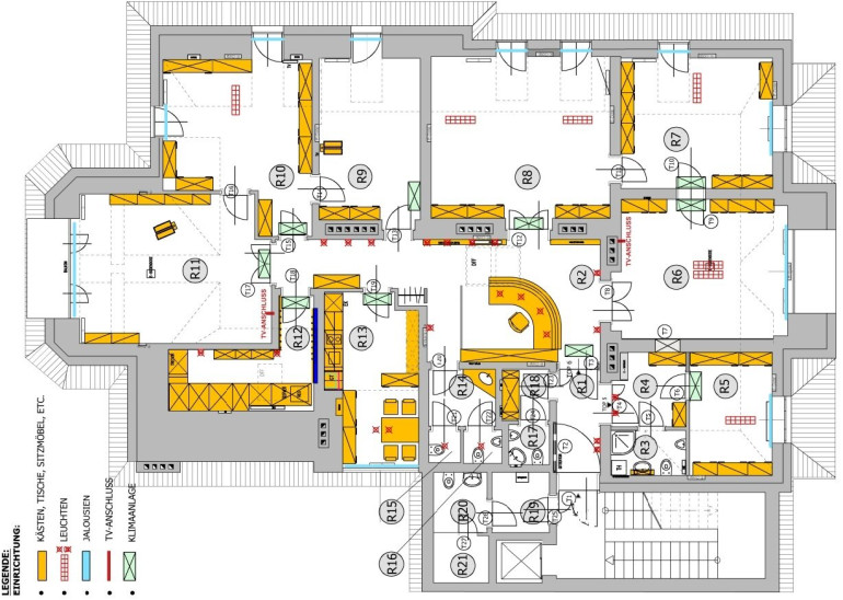>>> Funktionaler Grundriss mit Einzel- und Mehrpersonenbüros