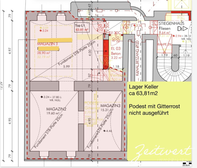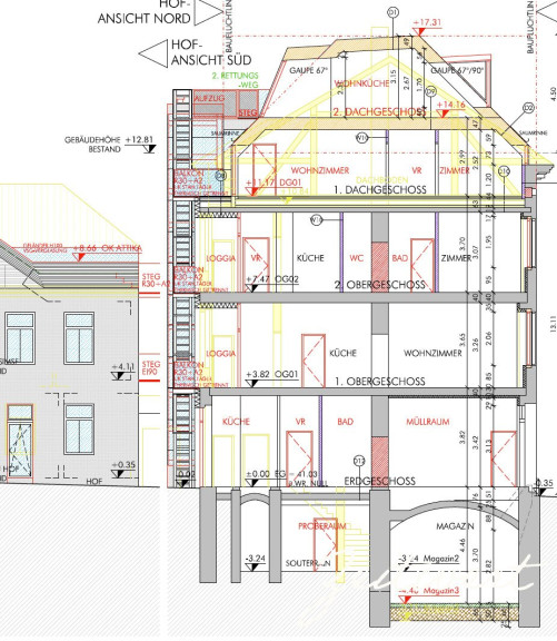 - Raumhöhe teilweise bis zu fast 4,5m (im Bereich ehemals tiefer Eiskeller)