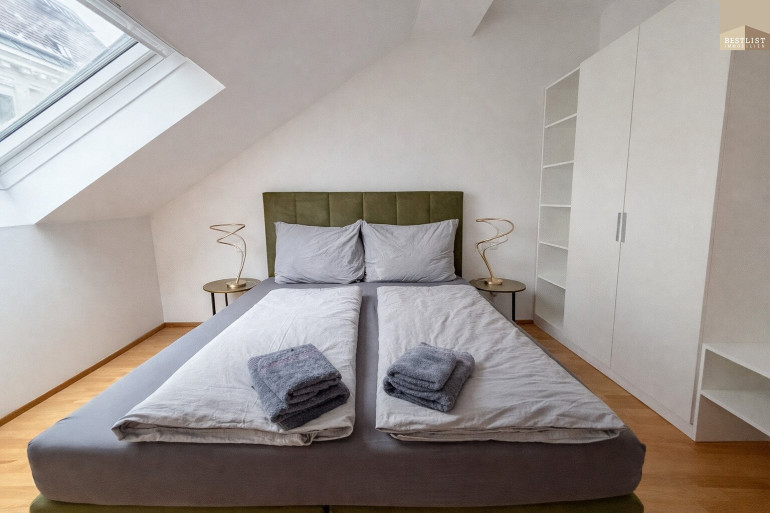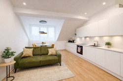 Die Wohnung befindet sich im Dachgeschoss eines klassischen Wiener Altbaus und wurde im Zuge eines modernen Ausbaus hochwertig adaptiert.
