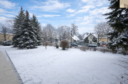 Die Umgebung ist geprägt von Wohnhäusern, Grünflächen und einer ruhigen Nachbarschaft.
