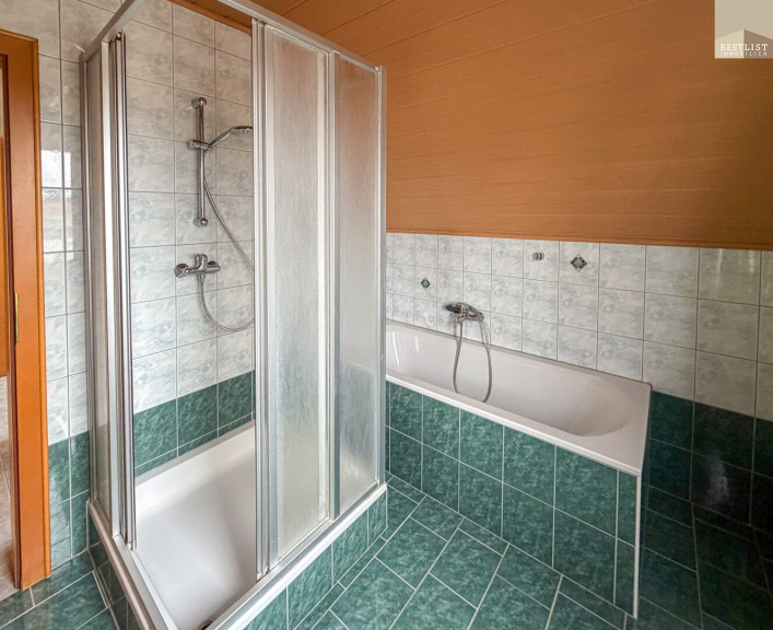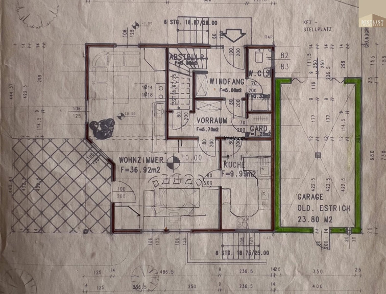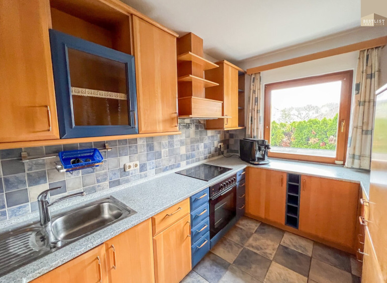 Fliesen, Laminatboden, Gas, Einbauküche, Bad mit Fenster, Badewanne, Dusche, Garage, Parkplatz