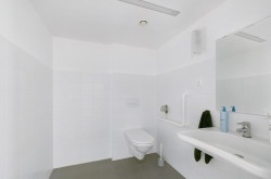 - Zugang: 1 Haupteingang straßenseitig, 2 Nebeneingänge hofseitig