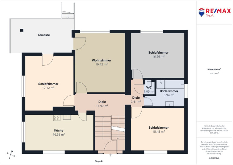 Mit einer Wohnfläche von ca. 106 m² bietet das Haus ausreichend Platz für Familien oder Paare mit höherem Raumbedarf.