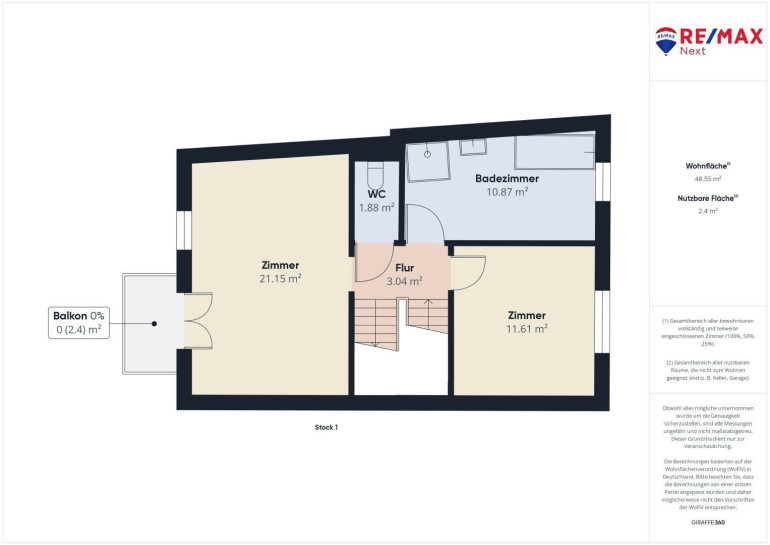* Balkon im 1.OG mit 2,4 m²