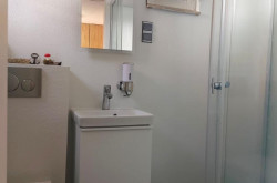 EG: Vorraum, Badezimmer mit Dusche und WC, Küche, Wohnzimmer, Gäste/Arbeitszimmer; Alle Böden im Wohnbereich sind mit Laminat und Epoxyharz belegt