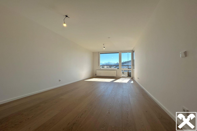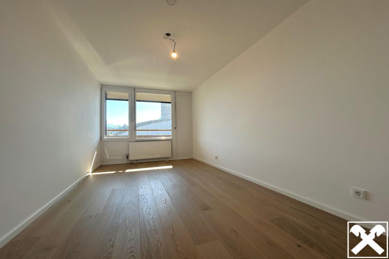 Das Herzstück der Wohnung bildet der offen gestaltete Wohnraum, der dank der großen Fensterfront, dem hochwertigen Eichen Parkett Boden und dem Festungsblick ein wahres Highlight ist. Das nebenan befindliche große Schlafzimmer verfügt ebenfalls über eine südliche Ausrichtung mit Blick auf die Festung. Abgerundet wird das Platzangebot der Wohnung durch einen großen Abstellraum und ein modernes Badezimmer mit Badewanne.
