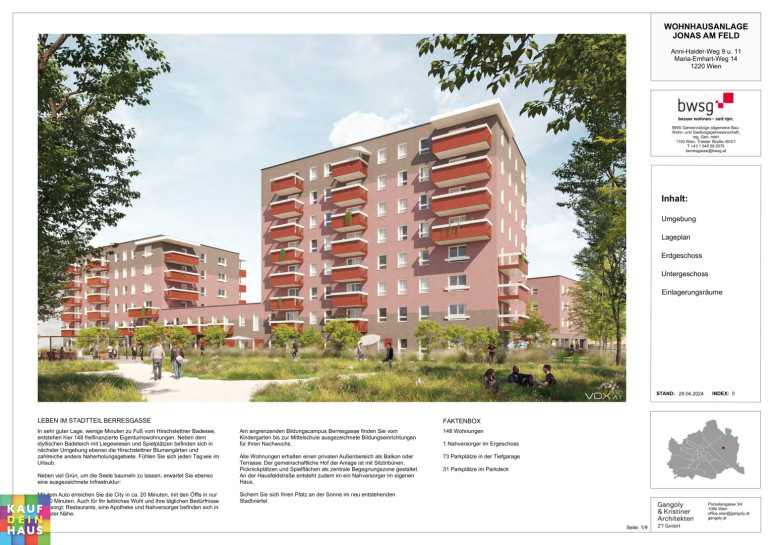 WOHNEN IM JONAS AM FELD - Bauplatz J, Anni-Haider-Weg 9+11; Maria-Emhart-Weg 14, 1220 Wien