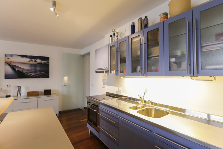 Parkett, Fliesen, Fernwärme, Wohnküche / offene Küche, Personenaufzug, Bad mit Fenster, Badewanne, Garage