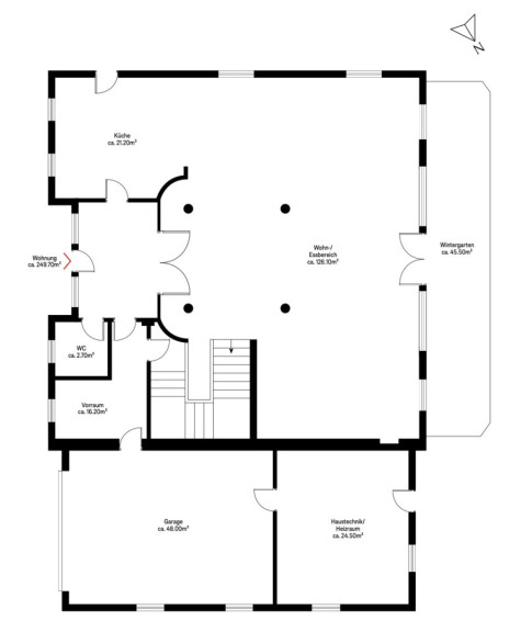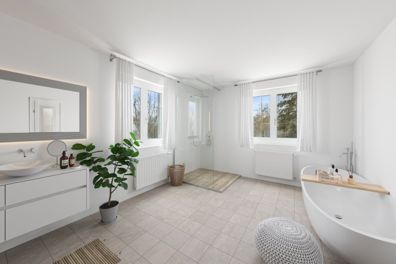 Die Immobilie verfügt insgesamt über fünf Schlafzimmer, drei Bäder und diverse Nebenräume. Die klar strukturierte Raumaufteilung bietet optimale Voraussetzungen und vielfältige Nutzungsmöglichkeiten für den Familienalltag, für Homeoffice-Lösungen oder auch komfortable Gästebereiche. Über eine private Zufahrt ist die Doppelgarage zu erreichen, von der aus man direkt in das Haus gelangt. Das weitläufige, gepflegte Grundstück mit eindrucksvollem Baumbestand garantiert ein Höchstmaß an Privatsphäre und ein Leben in mitten von Natur und Grün. Die Liegenschaft ist nicht einsehbar und bietet damit ideale Bedingungen für Erholung, Freizeitaktivitäten und auch gesellige Anlässe. Optional besteht die Möglichkeit, ein zusätzliches Teilgrundstück mit eine Fläche von ca. 2.000 m² inklusive Teich gegen Aufpreis (Euro 400.000.-) zu erwerben. Darüber hinaus steht aktuell das benachbarte Grundstück mit Pferdestall zum Verkauf – eine attraktive Option für Tierliebhaber:innen oder zur Erweiterung des eigenen Anwesens.