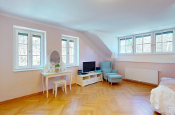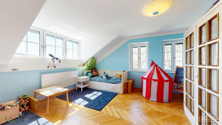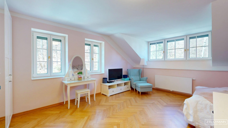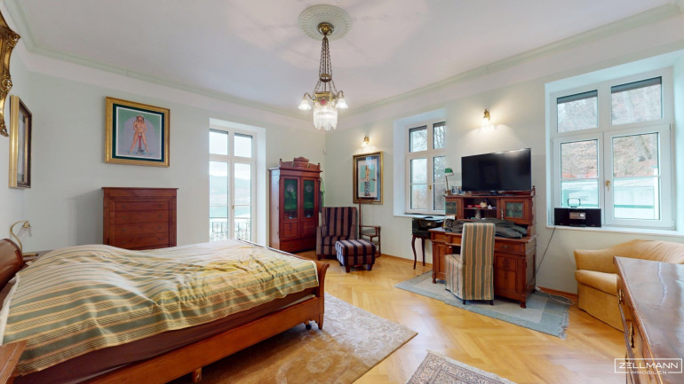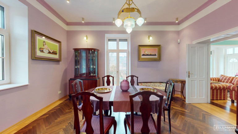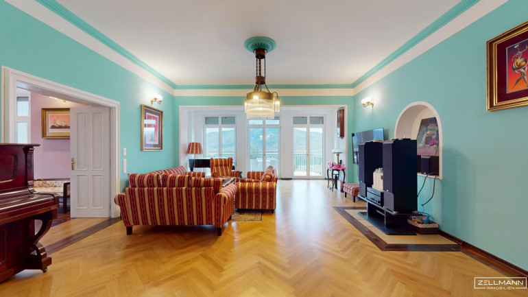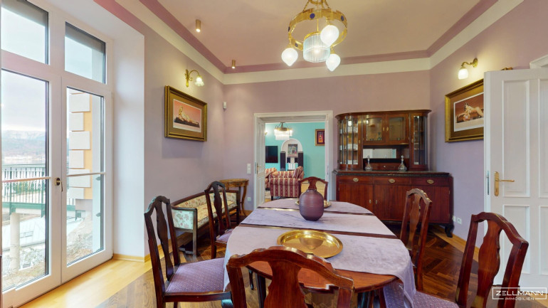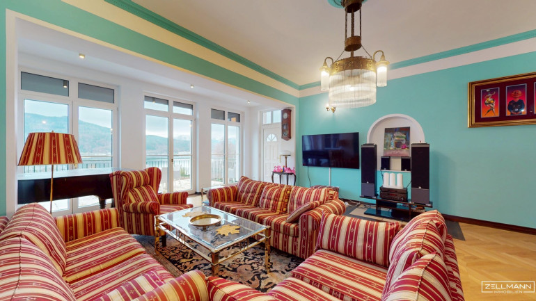 Die Villa bietet auf rund 530 m² Nutzfläche verteilt auf drei Ebenen insgesamt 9 große Zimmer sowie großzügige Nebenflächen. Die Architektur verbindet moderne Elemente mit stilvollen historischen Details im traditionellen Wörthersee-Stil, die im Zuge der umfassenden Sanierung der Jahrhundertwende Villa originalgetreu neu interpretiert wurden.