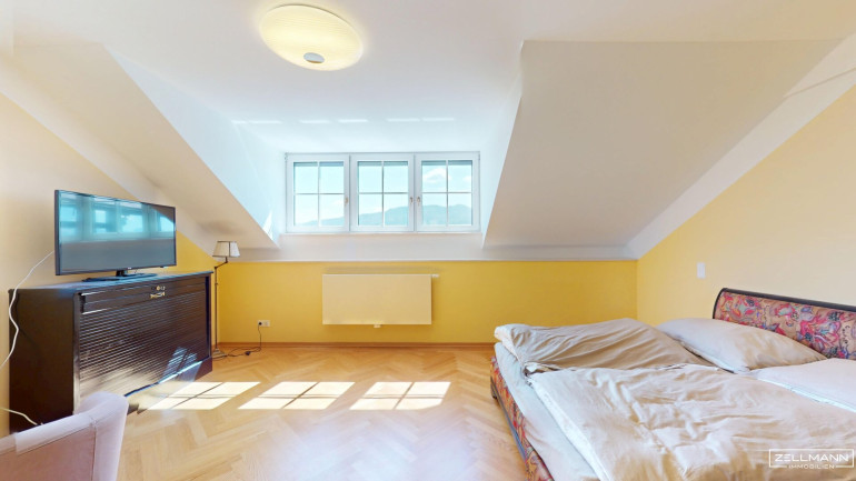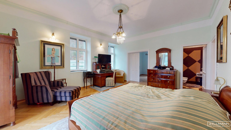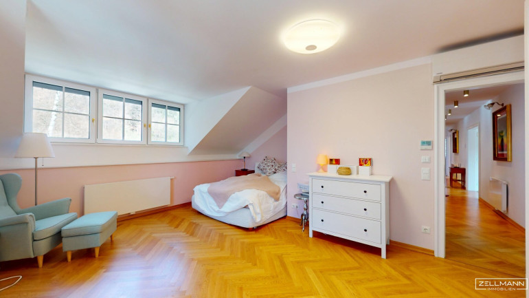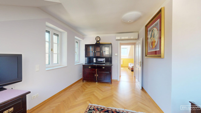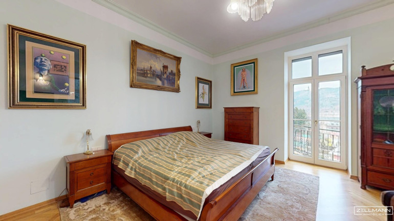 4 Zimmer · zentral begehbar . großzügiges Süd-Zimmer (ca. 33 m²) mit Balkon (ca. 11 m²), ideal als Masterbereich oder Wohnsalon · 2 Badezimmer · separates WC