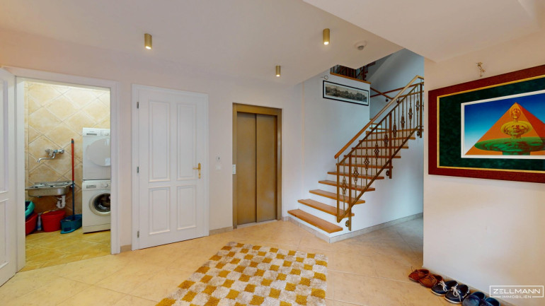 Ein besonderes Highlight ist der Personenaufzug, der alle Ebenen komfortabel verbindet und das Haus auch für Personen mit eingeschränkter Mobilität ideal nutzbar macht.