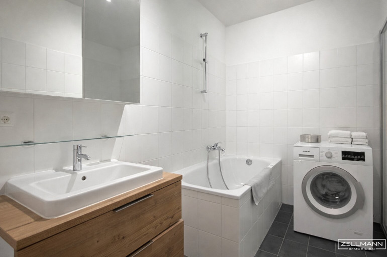 Das Badezimmer ist funktional gestaltet und bietet ausreichend Platz für den täglichen Komfort. Ergänzt wird die Wohnung durch ein separates WC sowie einen praktischen Abstellraum.