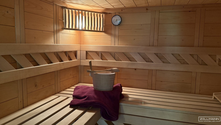 Parkett, Steinboden, Erdwärme, Fußbodenheizung, Zentralheizung, Einbauküche, Wohnküche / offene Küche, Nordbalkon, Südbalkon, Bad mit Fenster, Badewanne, Dusche, Kabel/Satelliten-TV, Garage, Carport, Alarmanlage, Sauna