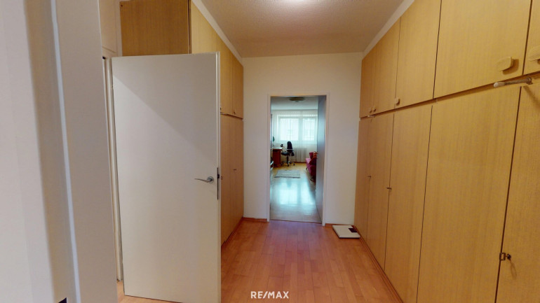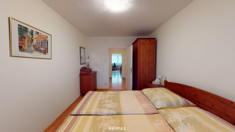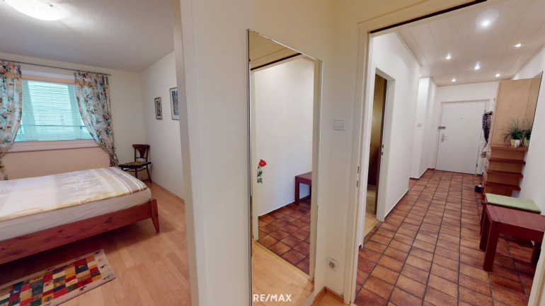 Aus dem zentralen Vorraum gelangen Sie in das ca. 20 m² große Wohnzimmer mit Loggia-Zugang, die ca. 10 m² große Küche mit Fenster, das Bad mit Wanne, das separate WC und über einen Schrankraum in ein hofseitiges Zimmer und ein Zimmer mit Fenster auf die Loggia.