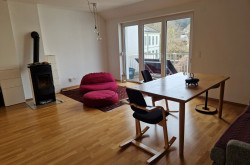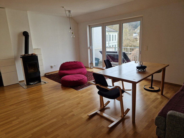 WOHLFÜHLOASE IM DACHGESCHOSS MIT TERRASSE, PELLETSZENTRALHEIZUNG+HOLZOFEN+SAUNA IM BADEZIMMER!