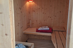Das Badezimmer ist das absolute Highlight dieser Wohnung: Auf über 10 m² mit Fenster finden Sie eine Badewanne, die Dusche, Waschmaschinenanschluss, maßgefertigte Wäschekästen sowie eine Sauna.