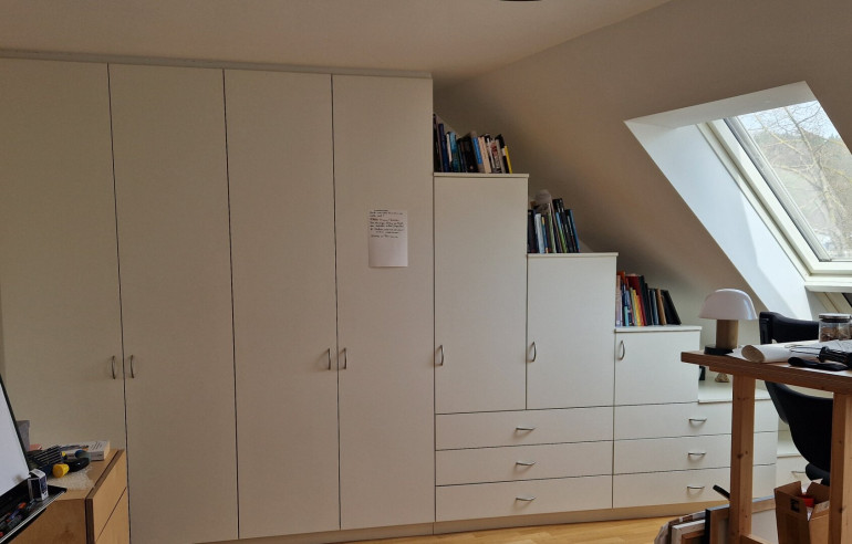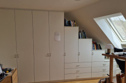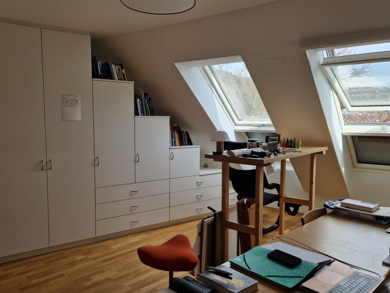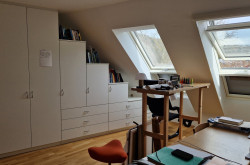 Das Kinder- oder Arbeitszimmer ist mit einem vom Tischler angefertigten Einbauschrank ausgestattet und hat ebenfalls einen wunderbaren Ausblick Richtung Kirche.