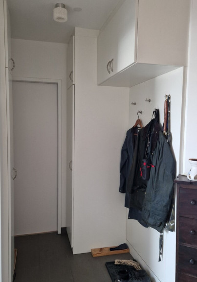 Bereits beim Betreten der Wohnung werden Sie von der hellen und freundlichen Atmosphäre empfangen. Vom geräumigen Vorraum mit hochwertigen Fliesen und Tischlereinbaumöbeln gelangen Sie in die insgesamt drei Zimmer und in das WC mit Handwaschbecken.