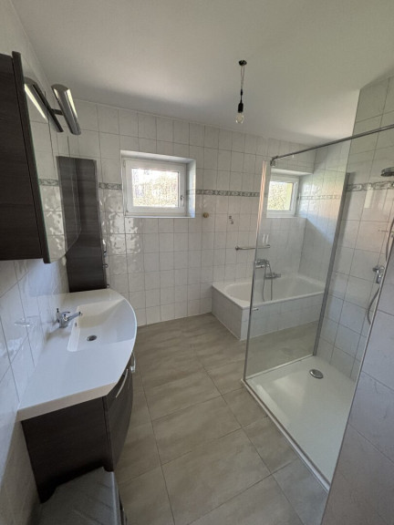 Die Doppelhaushälfte verfügt über insgesamt zwei WCs, was den Wohnkomfort für Familien oder mehrere Bewohner erheblich steigert. Die Ausstattung ist modern und neuwertig, sodass Sie ohne großen Renovierungsaufwand einziehen und sich sofort wohlfühlen können. Im 1. OG wurden die Böden entfernt. Diese müssen erneuert werden.