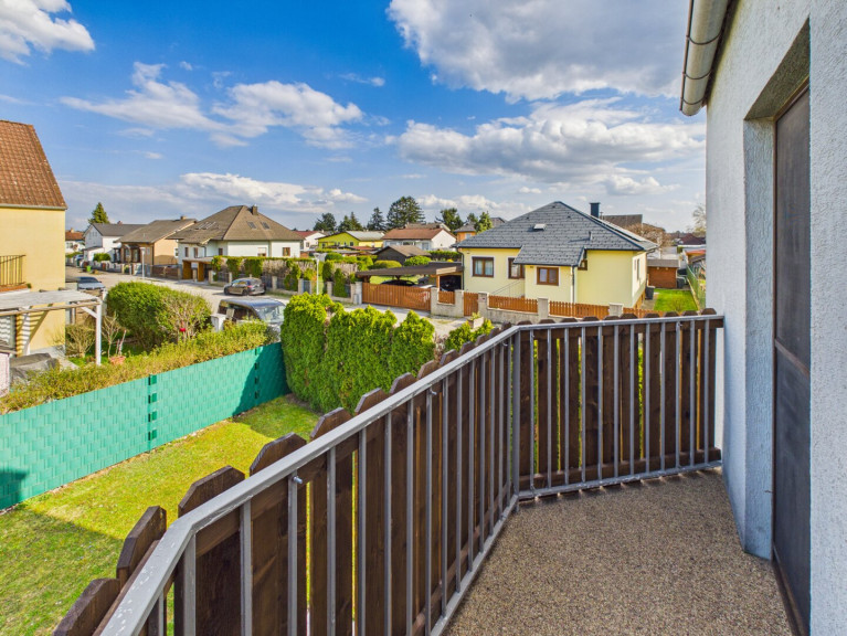 Ergänzend dazu steht ein über 45 m² großer Keller zur Verfügung, der sich ideal als Hobbyraum oder praktischer Stauraum nutzen lässt. Der Außenbereich mit rund 139 m² Gartenfläche bietet ein angenehmes Maß an Grünfläche für Erholung und Freizeit. Ein eigenes, unweit gelegenes Carport rundet dieses attraktive Angebot in gefragter Lage vor den Toren Wiens stimmig ab.