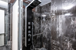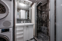 Modernes, neuwertiges Badezimmer und WC