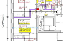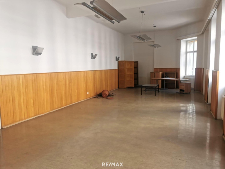 Hierbei handelt es sich um eine großzügige ca. 106m² große unrenovierte Altbaufläche, welche 2 in Wohnungen umgebaut werden kann. Hierzu gibt es bereits eine Entwurfsplanung (siehe Anhang) und die ursprüngliche Bürofläche wurde zwischenzeitlich bereits zu Wohnzwecken umgewidmet. Die leicht über dem Erdgeschoß gelegen Fläche verfügt über hohe Räume sowie große Fensterflächen und garantieren eine gute Belichtung.