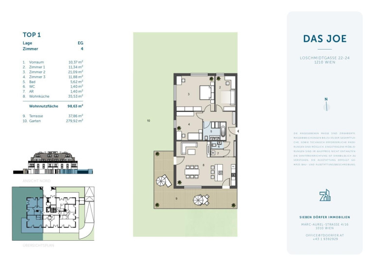 Im Neubauprojekt DAS JOE in 1210 Wien, gelangt eine besonders attraktive Erdgeschosswohnung mit großzügigem Eigengarten zum Verkauf. Top 1 bietet mit ca. 279 m² Gartenfläche und einer zusätzlichen Terrasse von ca. 38,9 m² außergewöhnlich viel Freiraum im Grünen – ein seltener Vorteil in einem modernen Neubauprojekt.