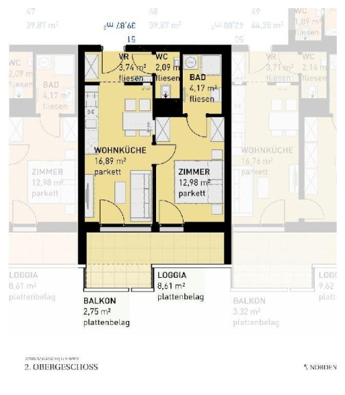 Sollten Sie mehr Platz benötigen, planen wir auch gerne eine größere Wohnung (zB eine 4-Zimmer-Wohnung anstelle von zwei nebeneinander liegenden 2-Zimmer-Wohnungen) für Sie. Fragen Sie einfach bei unserem Vertrieb nach!